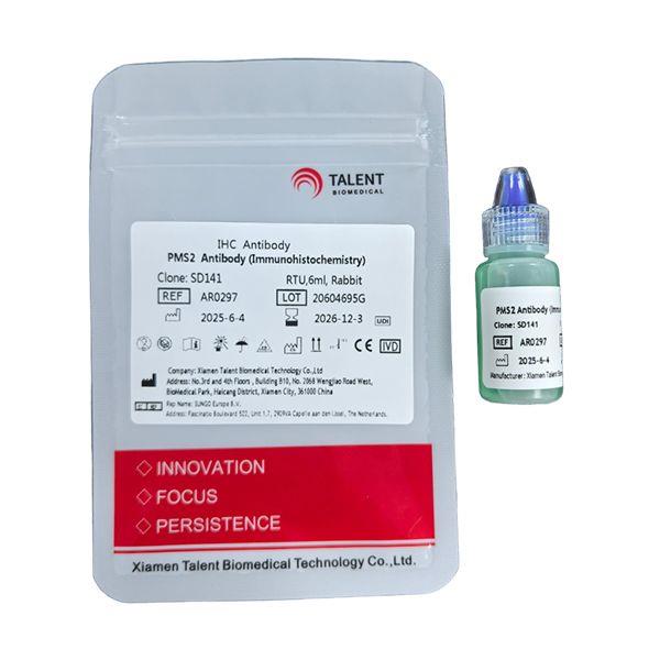PMS2 is one of the PMS2 gene family members found in clusters on chromosome 7. The product of this gene is involved in DNA mismatch repair. It forms a heterodimer with MLH1 and this complex interacts with other complexes bound to mismatched bases. Mutations in this gene are associated with hereditary nonpolyposis colorectal cancer, Turcot syndrome, and are a cause of supratentorial primitive neuroectodermal tumors. Add the primary antibody to bind the antigen on tissue sections, and then use HRP labeled secondary antibody binding primary antibody to form the secondary antibody-primary antibody-antigen complex. When DAB chromogenic solution is added, HRP reacts with enzyme substrate to produce brown insoluble reaction product, which indirectly indicating the existence of antigen.